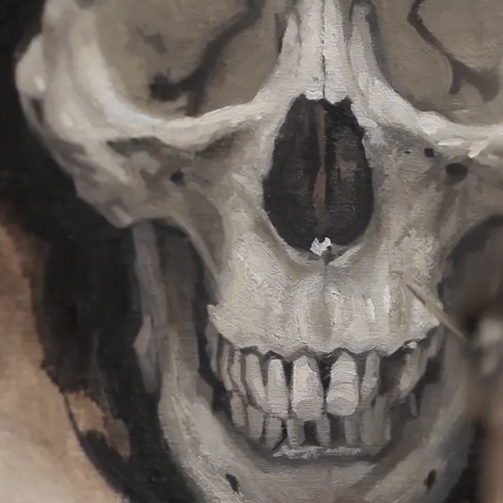 In this 40 minute completely instructional video, David Kassan takes you through the different steps that he uses to create an all in one sitting Premier Coup painting of the human skull.